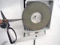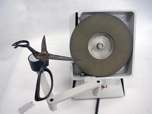 | 電動はさみ研ぎ機です。 。 電源を入れると、細め砥石が比較的低回転で回転します。付属のアームに内蔵のマグネットに、はさみを平板状態で固定し、優しく何度か砥石上に押し当てると、数秒で研ぎが完了します。 文具ばさみなどでしたら、市販の小さなものでもいいのでしょうが、我々の業界では刃先が欠損したり、割れたり、使いすぎてやせすぎているようなものもあり、どうしてもグラインダー式でないと思い通りに手早くできません。 ナイロン系ノリや3M等の強力ノリが付いていても、一気にそぎ落として再生です! 説明しようもないほど簡単ですが、是非一度お試し下さい! |